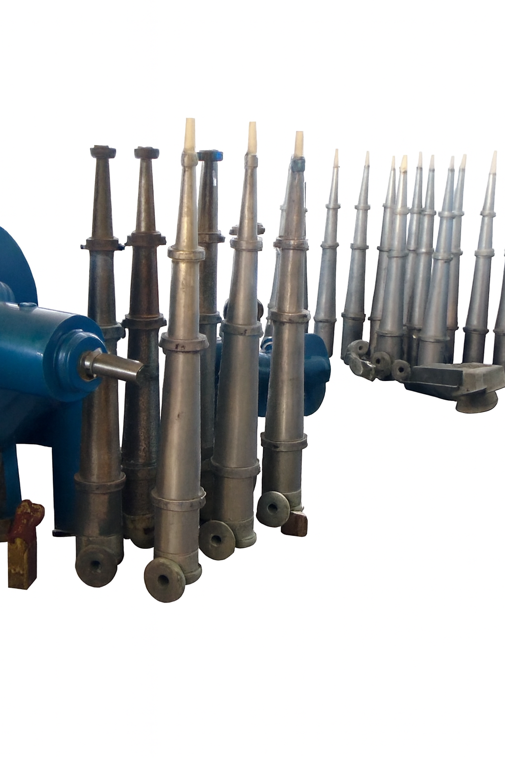 - Structure: Tapered cylindrical bodies with flanged bases and bolted joints for secure assembly and maintenance.